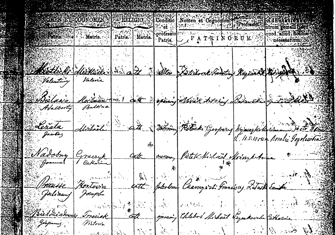 11 Jan 1816 in Mądre, Mądre parish. Written as BIELAWIAK |